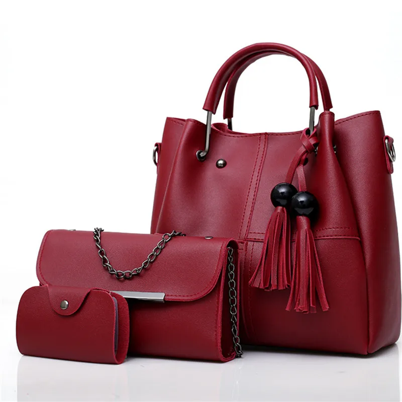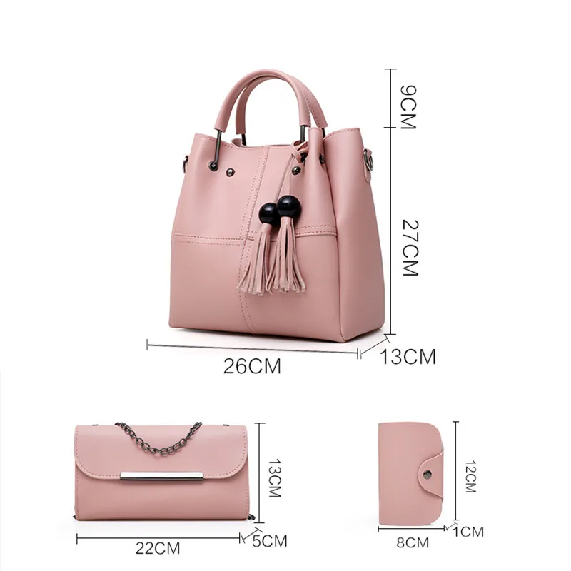 Opul Exo 3-Piece Fashion Tassel Shoulder Bag Set – PU Leather Casual Tote & Messenger Bags
